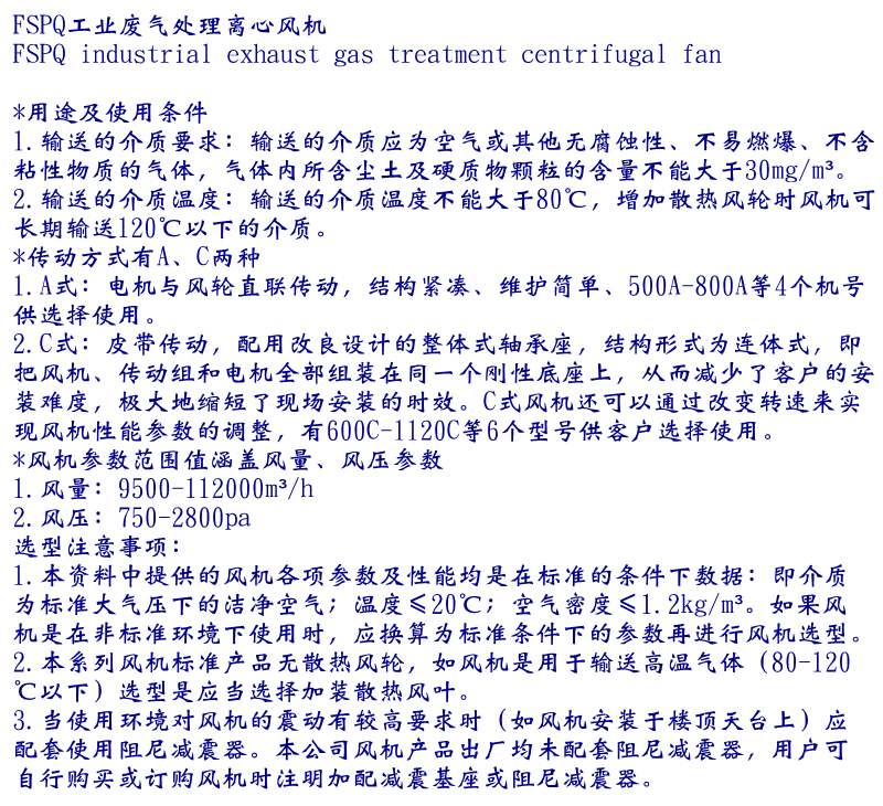 輸送的介質要求:輸送的介質應為空氣或其他無腐蝕性、不易燃爆、不含 粘性物質的氣體,氣體內所含塵土及硬質物顆粒的含量不能大于30mg/m3。 2.輸送的介質溫度:輸送的介質溫度不能大于